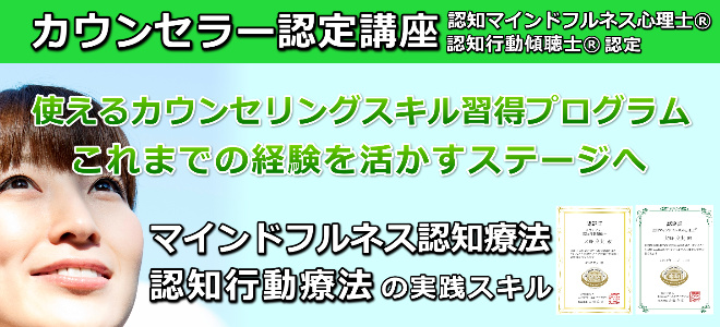 「セルフカウンセリング講座では、認知鼓動療法、マインドフルネス認知療法に基づいたセルフカウンセリングの手法を学びます。
